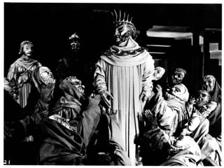 Les màscares iels vestits indicaven al públic els papers -qui era el rei o qui el missatger. La màscara impedia veure l'expressió de la cara i, per tant, l'actor expressava els sentiments del personatge amb gestos exagerats o verbalment.