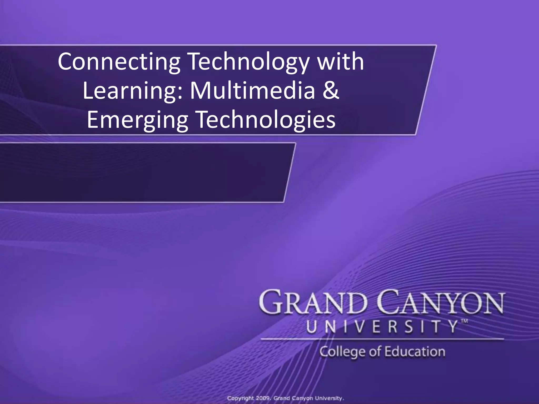 This document discusses using emerging technologies and multimedia in the classroom. It encourages teachers to consider how technologies can engage students and support learner-centered exploration of content. Examples of multimedia tools mentioned are presentation software, digital stories, websites and e-portfolios. Emerging technologies discussed include voice/handwriting input, 3D displays, handheld devices and wireless networking. The document provides questions for teachers to consider when evaluating new technologies for classroom use.