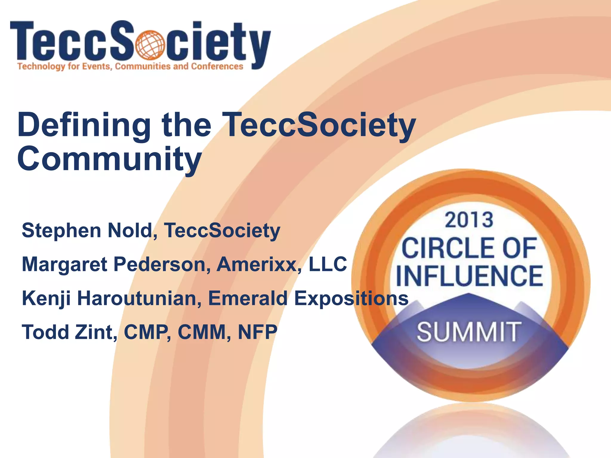 The document outlines the vision and purpose of the teccsociety community, emphasizing the importance of relationships between technology providers and smart buyers to drive innovation. It highlights the focus on education, research, and personal experiences rather than traditional methods. The overarching theme is about establishing a legacy through knowledge and connecting members effectively.