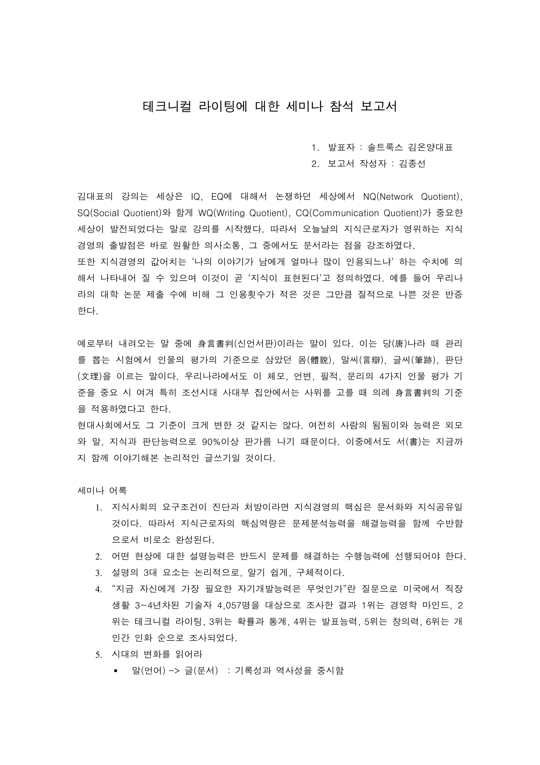 테크니컬 라이팅에 대한세미나 참석 보고서