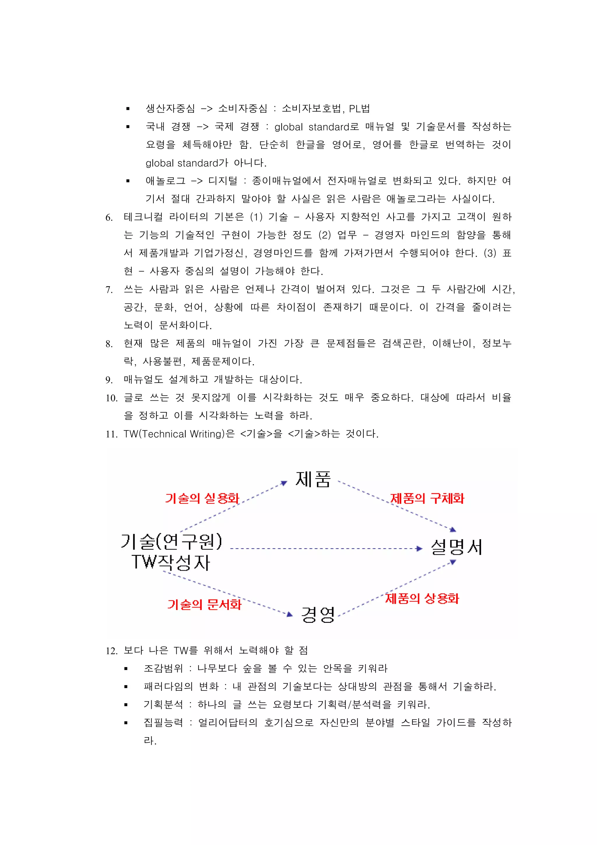 11. TW(Technical Writing)은 <기술>을 <기술>하는 것이다.