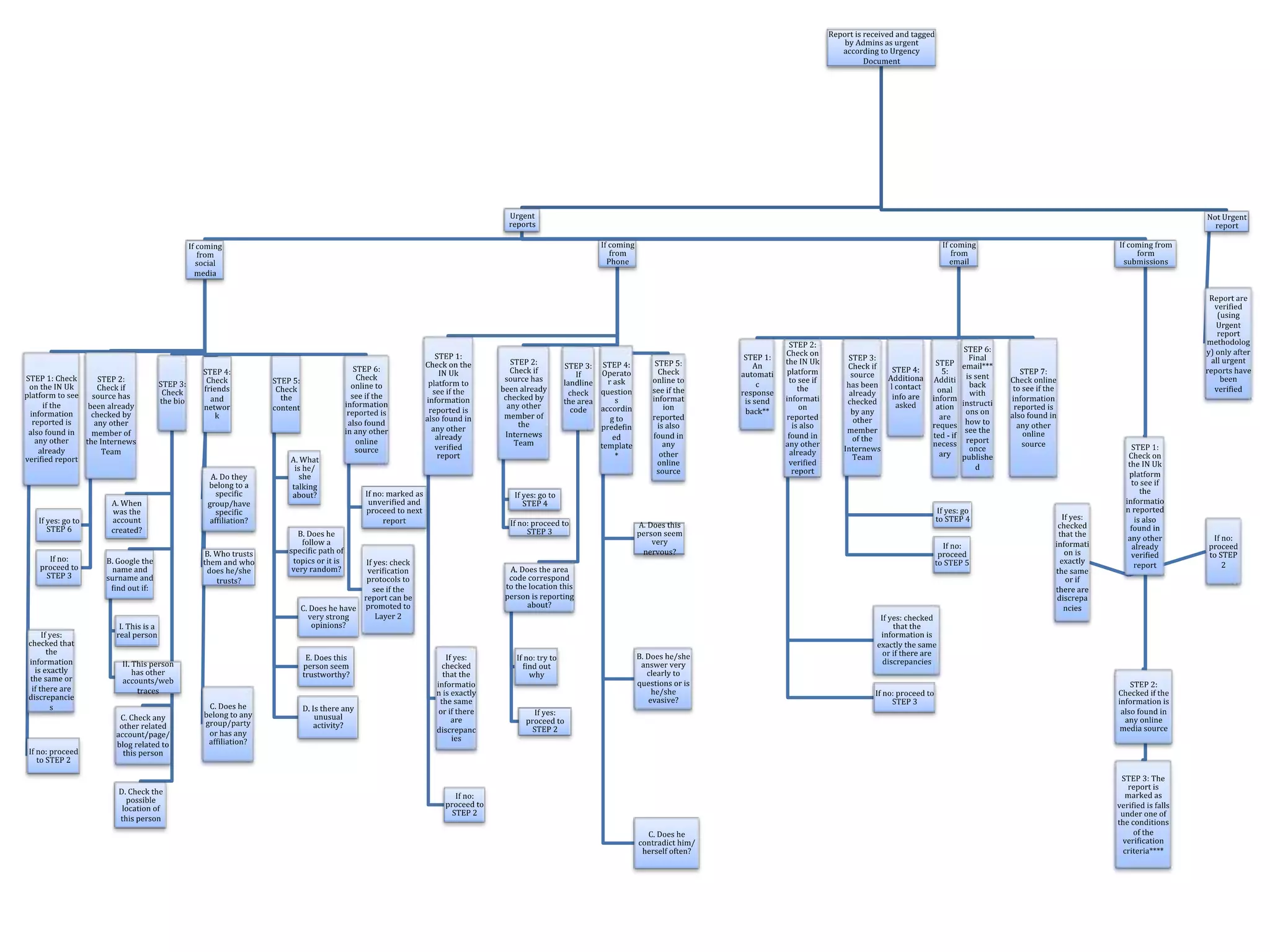 This document details a comprehensive framework for verifying crowdsourced information during elections, emphasizing the importance of a multi-level approach to ascertain the accuracy of reports. It covers various types of verification: content, context, and sources, and outlines methods such as triangulation, social authentication, and direct engagement with sources to assess credibility. The document highlights the complexities of online verification, including factors like timing, location, and language, which are critical in determining the reliability of reported information.