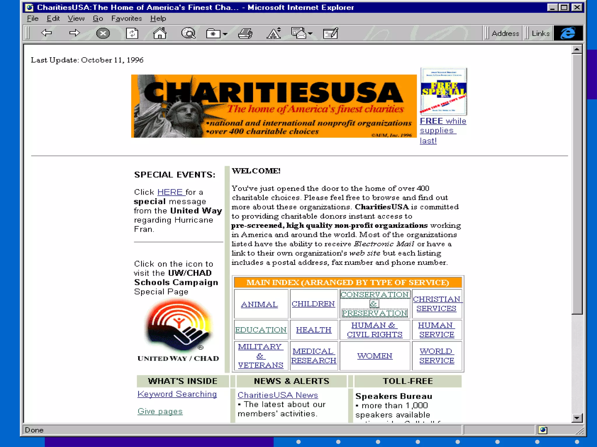 The document presents findings from a survey of 4,000 non-profit organizations conducted by the C.S. Mott Foundation, revealing a low response rate of 5.2% with a significant focus on equipment rather than staff training for technology use. It highlights under-utilization of existing systems and the rising costs and accessibility of technology, such as dedicated access options. Moreover, it discusses the evolution of tools and content in the digital age, providing examples of innovative communications applications and services.