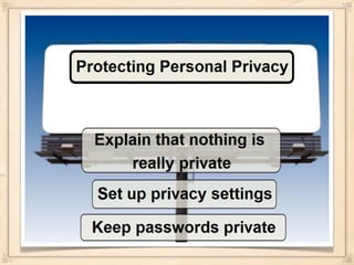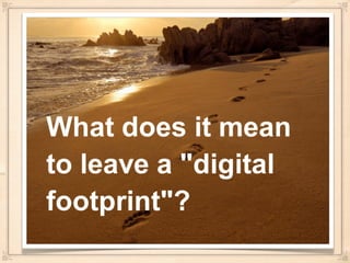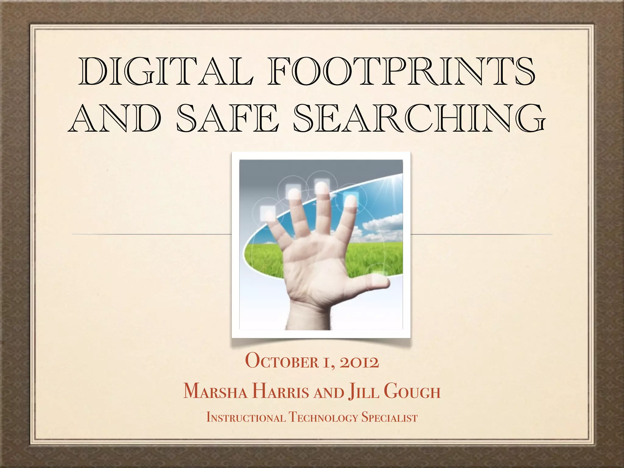 This document discusses establishing positive digital footprints and safe searching for elementary school children. It covers age-appropriate social media tools like blogs and wikis that Trinity School uses. It also discusses privacy laws like COPPA and how to make portions of profiles private versus public. Finally, it provides safety tips for social media sites like YouTube, Facebook, Instagram and searching tools like browsers and Google's safe search features. Students and parents with questions should contact the instructional technology specialists.