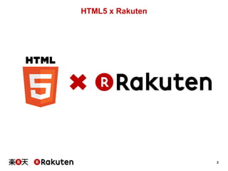 The document outlines the activities and objectives of the HTML5 Project Team at Rakuten, led by Tsutomu Ogasawara. It covers the team's structure, mission, and several HTML5 implementations and evangelization efforts within the company. Additionally, it highlights various HTML5 applications, tools, and a detailed implementation guide aimed at expanding HTML5 usage across Rakuten's platforms.