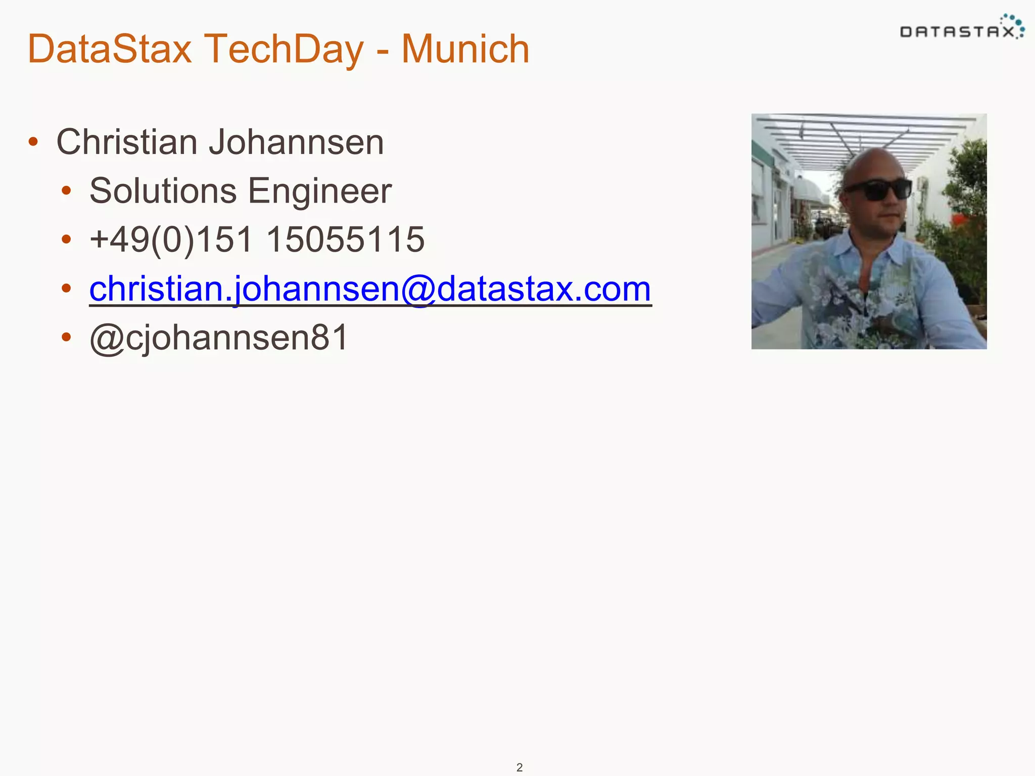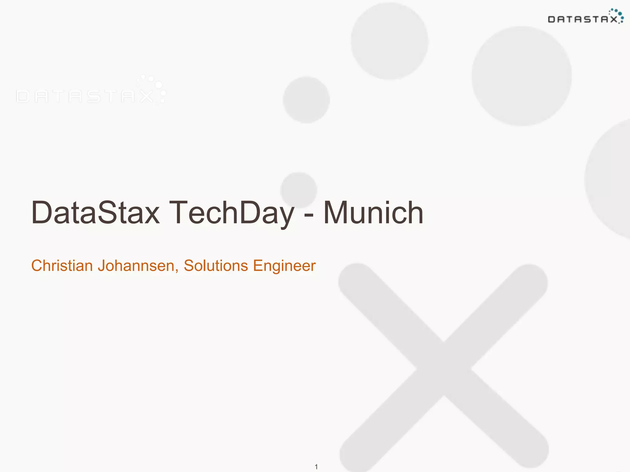 The document outlines the agenda for a DataStax TechDay event in Munich. The agenda includes sessions on Cassandra overview and architecture, schema design, and DataStax Enterprise analytics. There will be presentations in the morning and afternoon, with a lunch break from 12pm to 1pm.