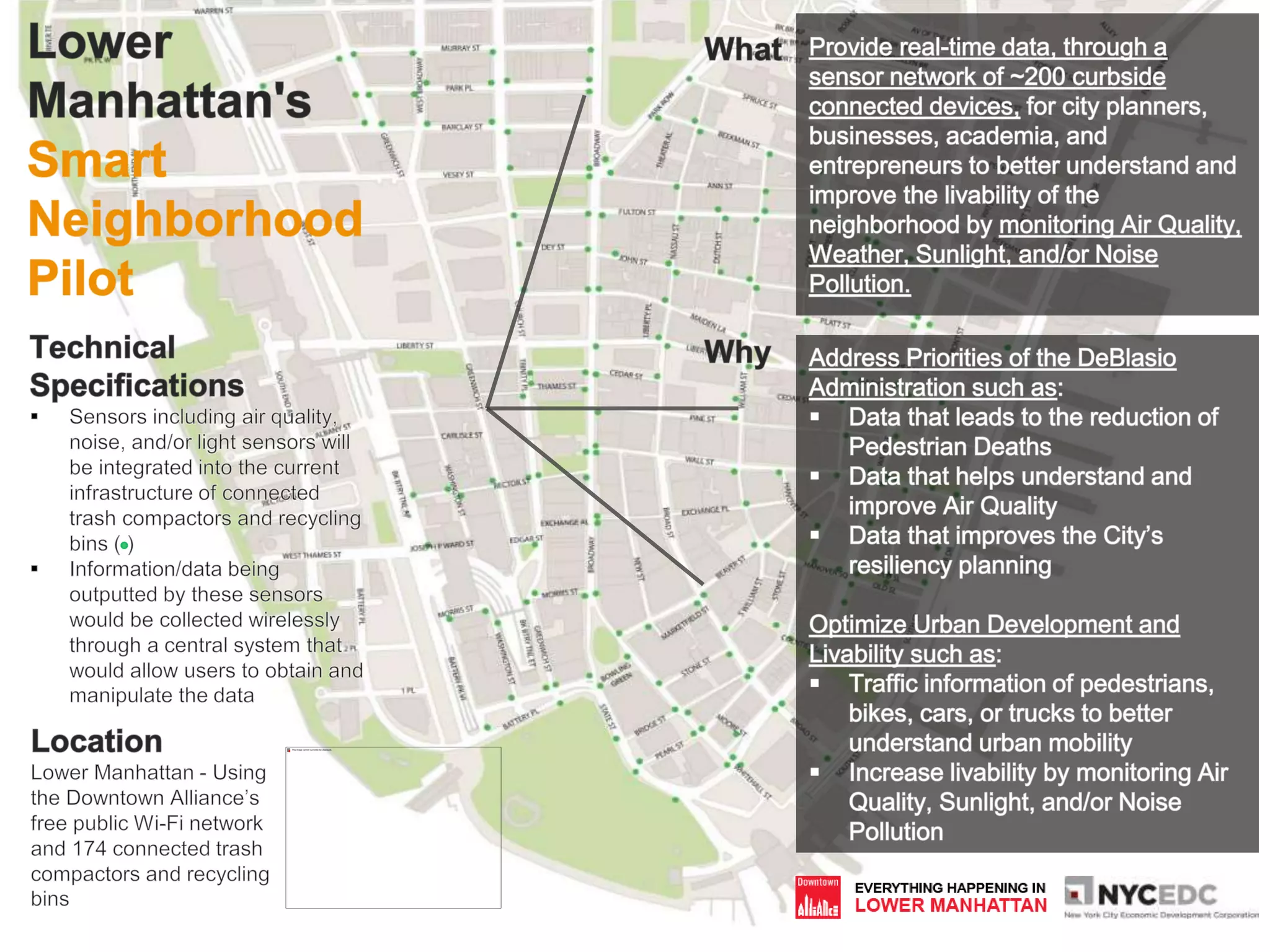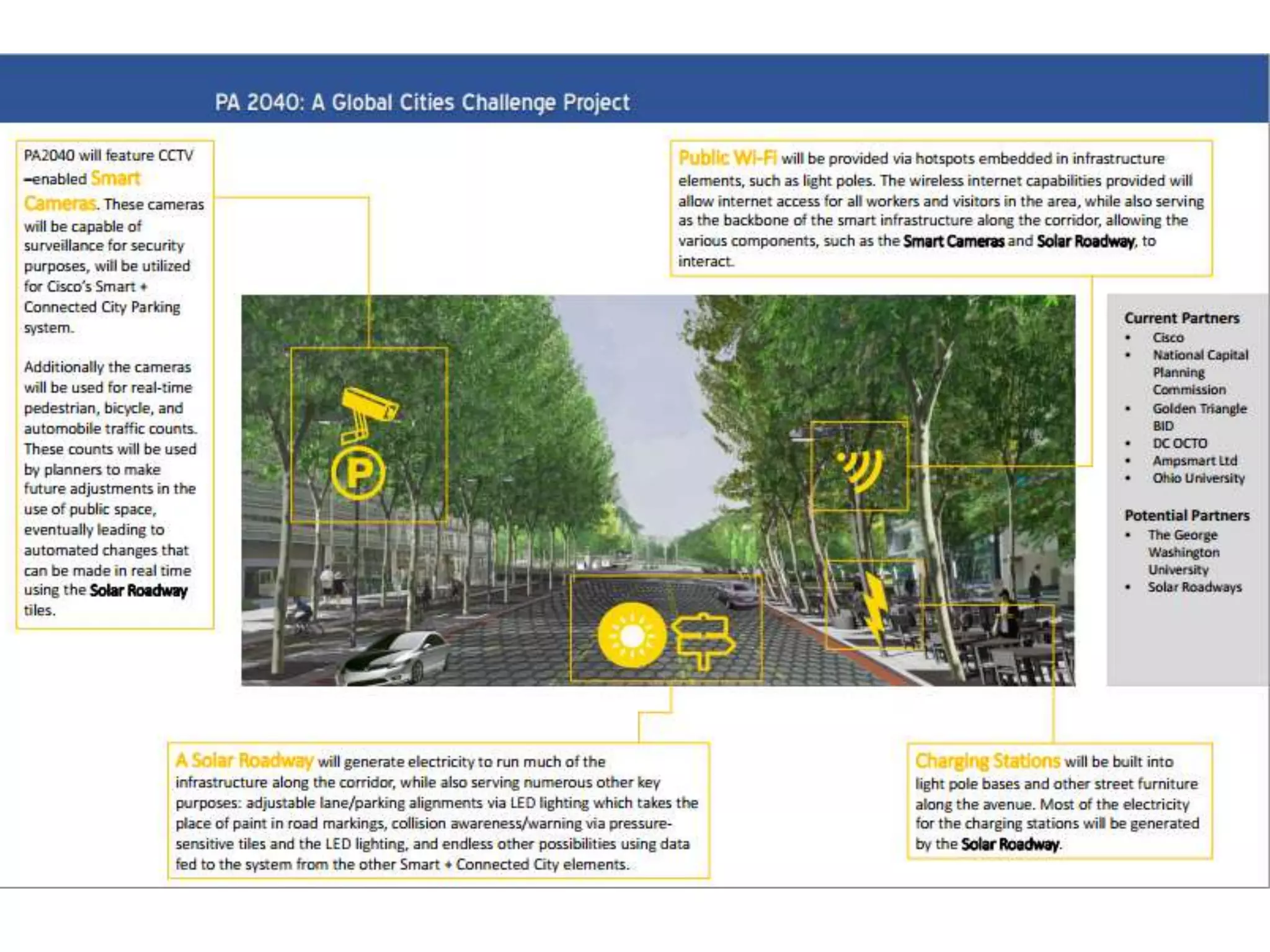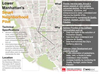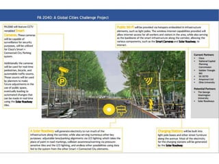 The document outlines various smart city initiatives and technological advancements aimed at enhancing urban mobility, community resilience, and environmental management. Key projects include automated vehicle systems for public transportation, real-time air quality monitoring in Chattanooga, and a 3D data visualization platform for energy efficiency in San Francisco. It highlights collaboration among multiple stakeholders, including universities, tech companies, and municipalities, to leverage the Internet of Things and other technologies for sustainable urban development.