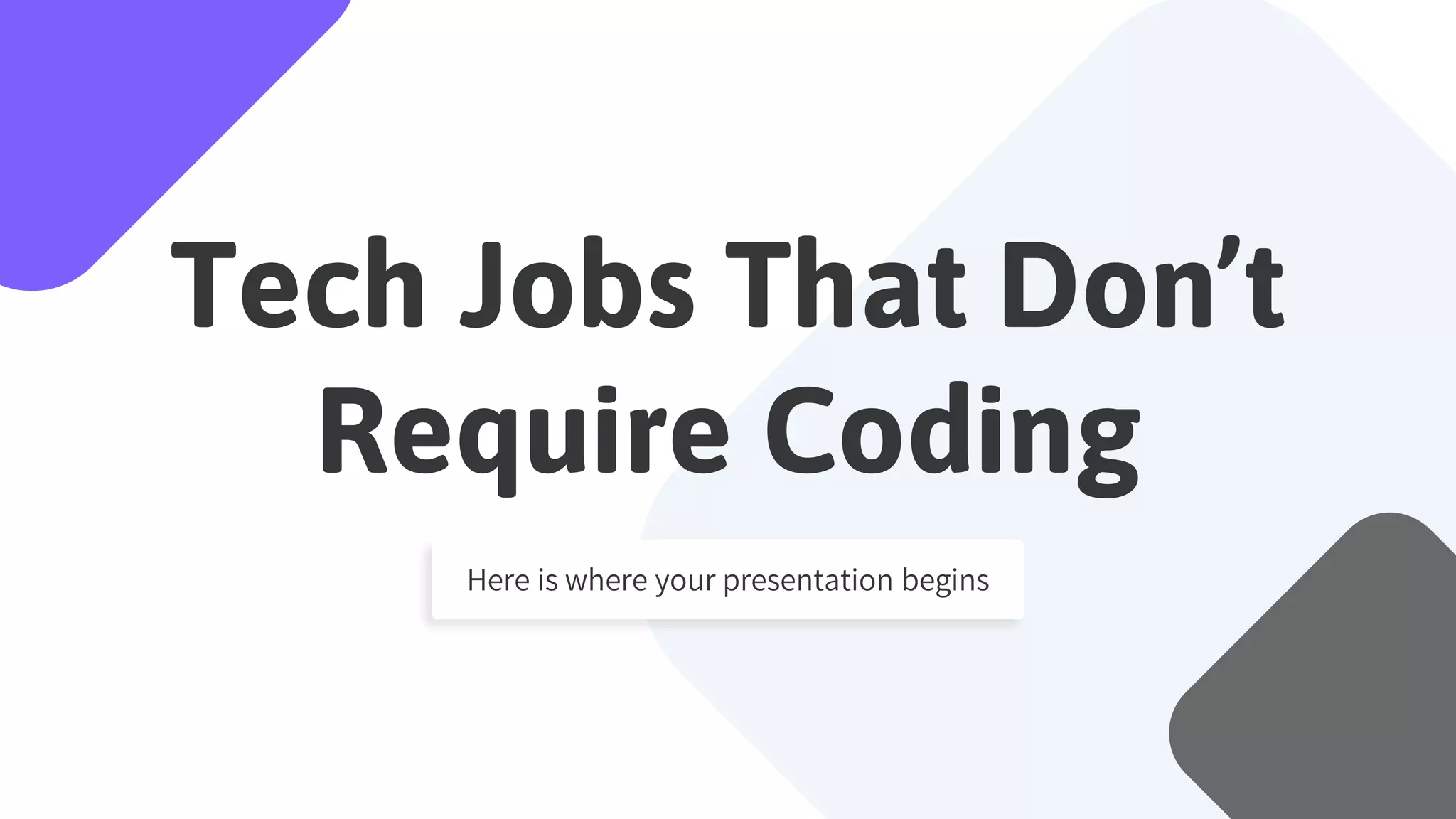 The document discusses various high-paying tech jobs that do not require coding skills, such as data analyst, product manager, designer, project manager, cyber security specialist, IT business analyst, scrum master, and system administrator. It emphasizes the increasing demand for these roles and outlines their primary responsibilities and average salaries. Additionally, it provides resources for job searching in this sector.