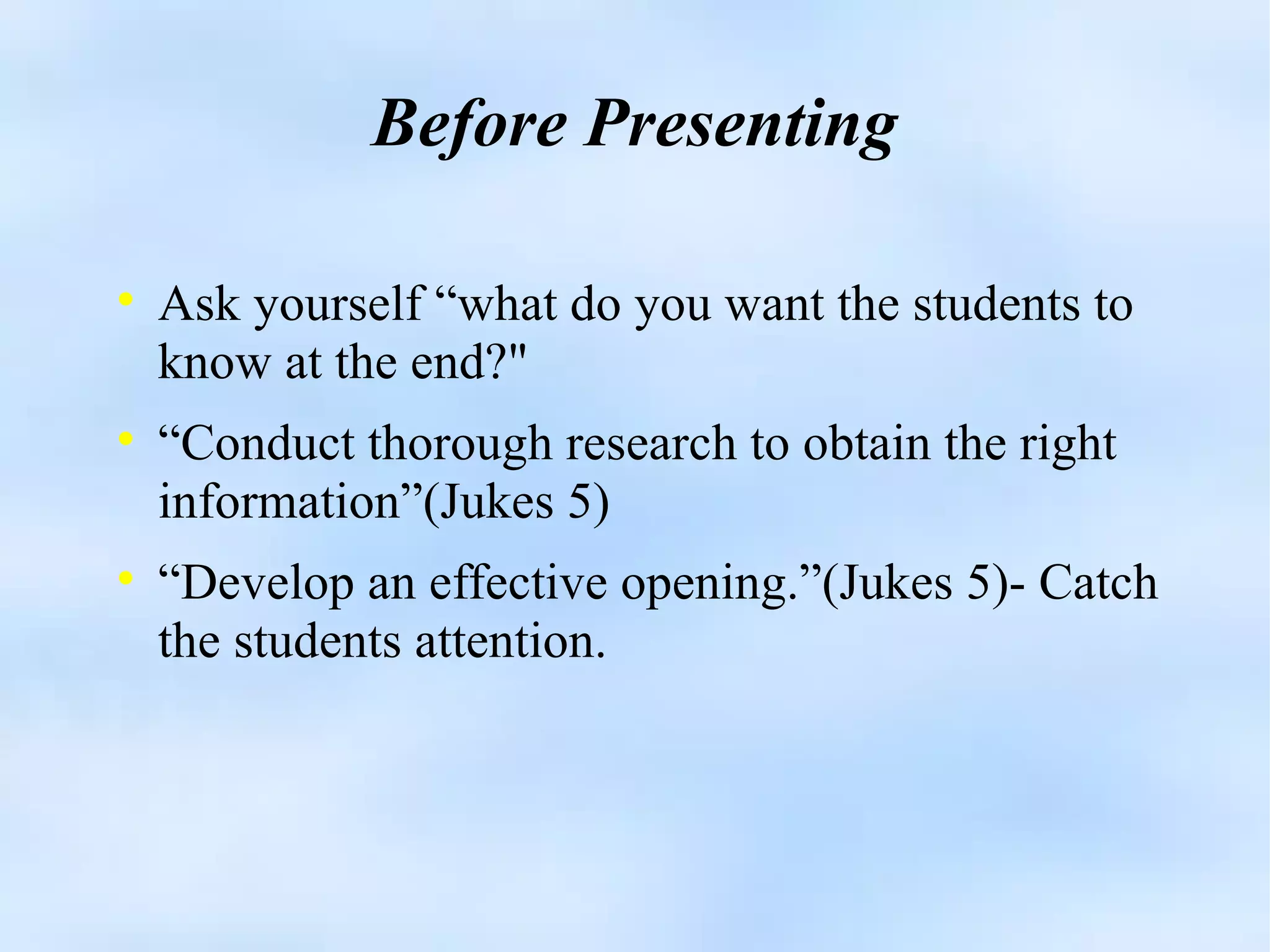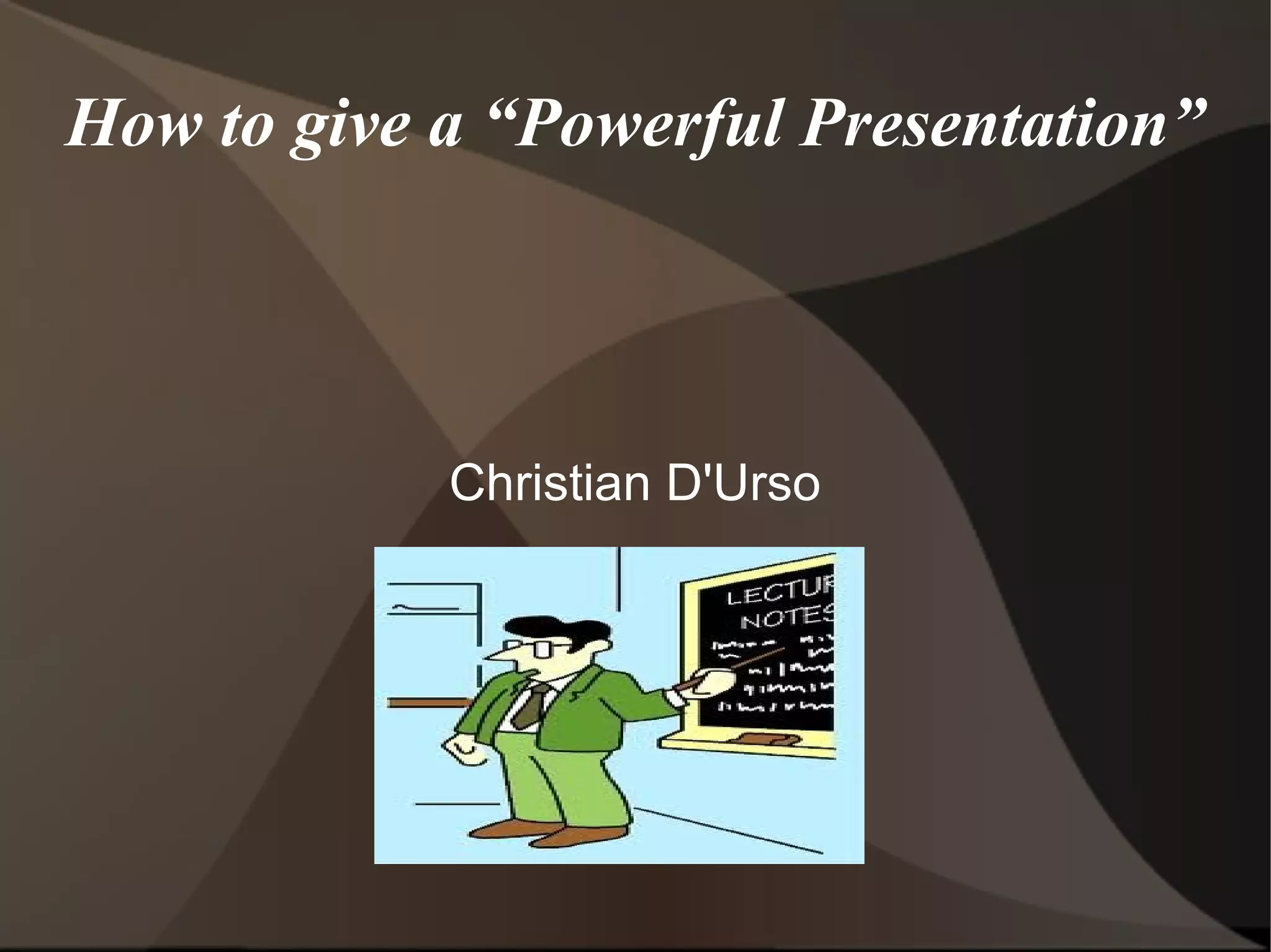 The document provides tips for giving a powerful presentation. It recommends determining the key messages, conducting thorough research, developing an engaging opening, choosing an effective structure, creating drafts and cutting unnecessary information. It also suggests using technology like a projector and PowerPoint, but not too much. Presenters should lecture along with slides and add extra information, using relevant pictures and short videos. The closing should include a review of critical points and possibly a discussion.