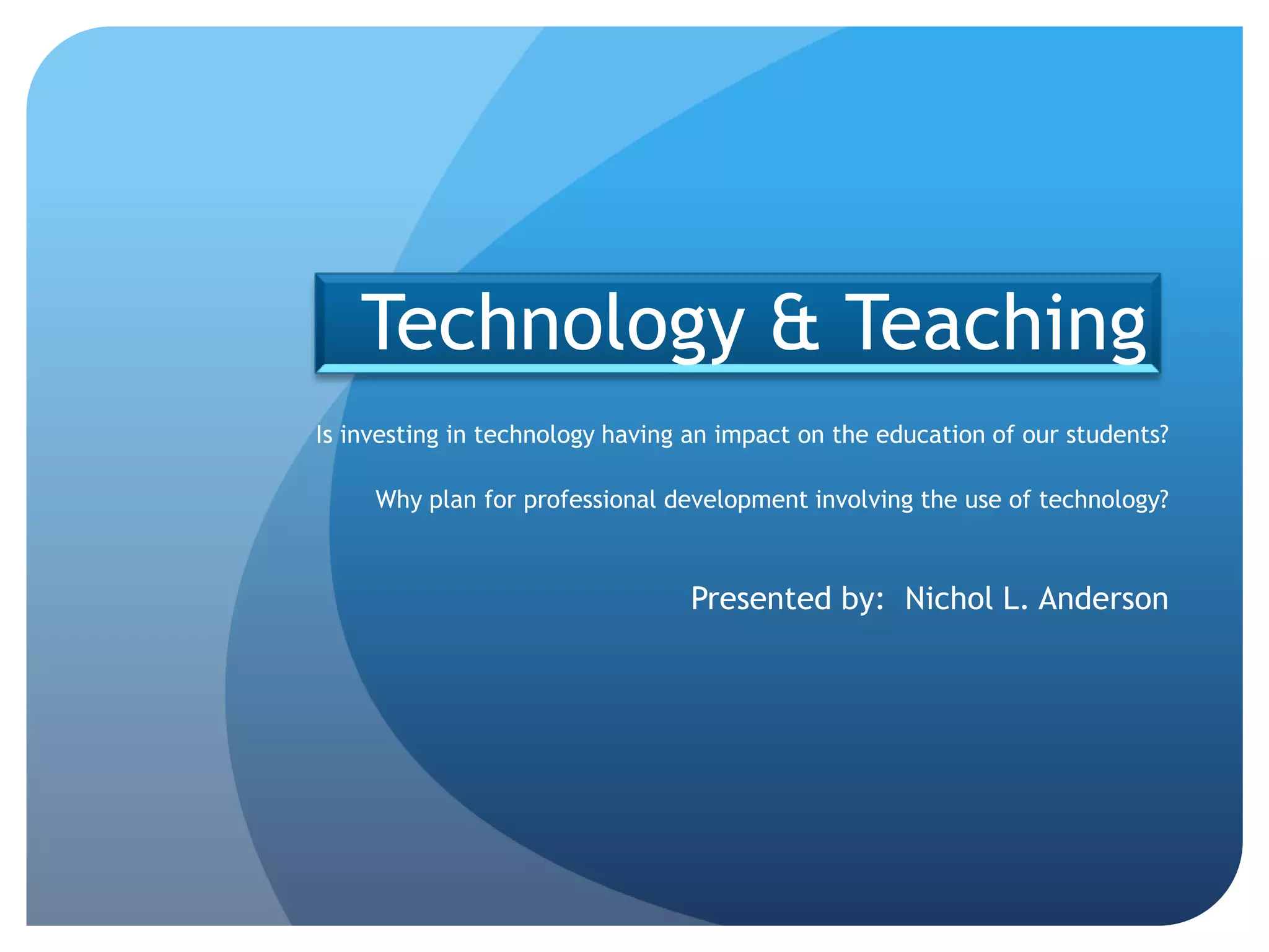 The document discusses the impact of technology on education and student learning. It explores how technology can be used to either teach students directly ("learning from computers") or as a tool used by teachers and students ("learning with computers"). When used as a tool, technology allows for inquiry, collaboration, differentiated instruction, and visual representations of concepts. The document also stresses the importance of professional development for educators to effectively implement technology in the classroom and prepare students for an increasingly technological future.