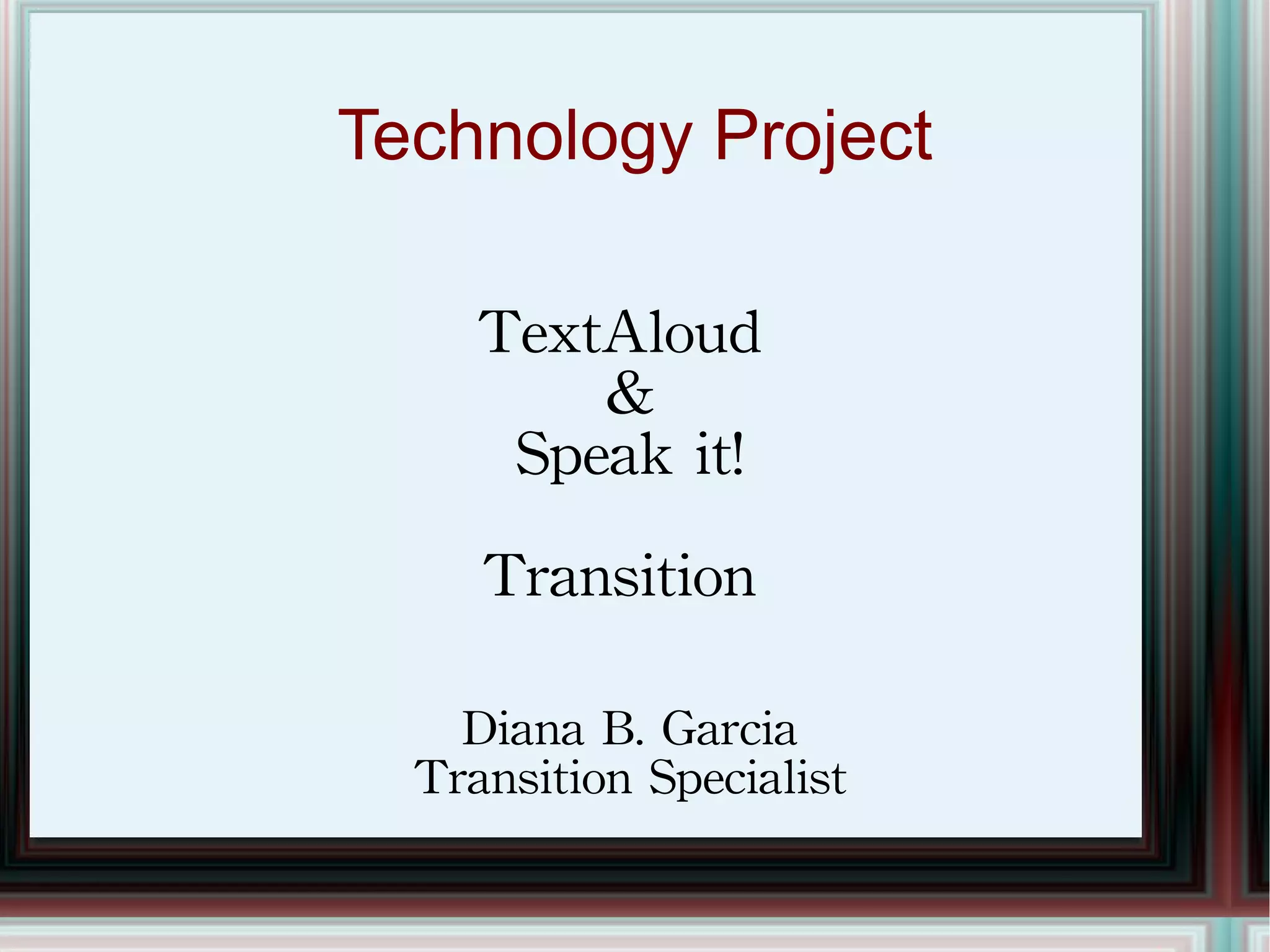 TextAloud and Speak It! are text-to-speech software programs that can be helpful for students with disabilities. TextAloud converts text from documents, emails, web pages and PDFs into natural sounding speech that can be listened to or saved as audio files. Speak It! is a similar program for Mac that allows users to copy and paste text and save or share the audio files. These programs can help students with reading disabilities feel more independent and assist them in classroom lessons, homework, and developing job skills by allowing them to listen to written materials.