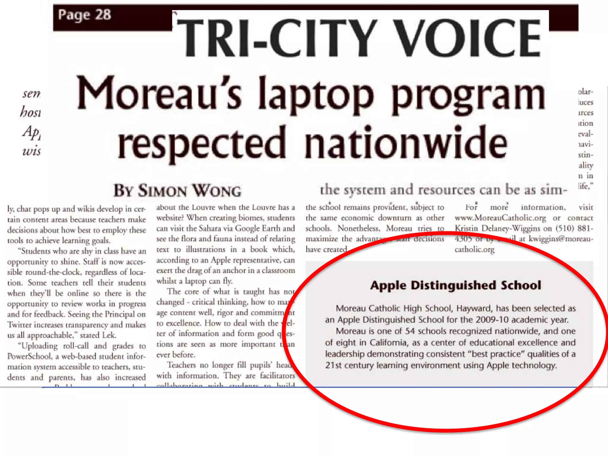 The document summarizes a presentation given to parents on technology tools used at Moreau Catholic High School. It discusses how teachers use blogs, podcasts, wikis and other online tools to engage students and enhance learning. It also addresses concerns parents may have about students' media use and offers tips on setting boundaries and communicating values.