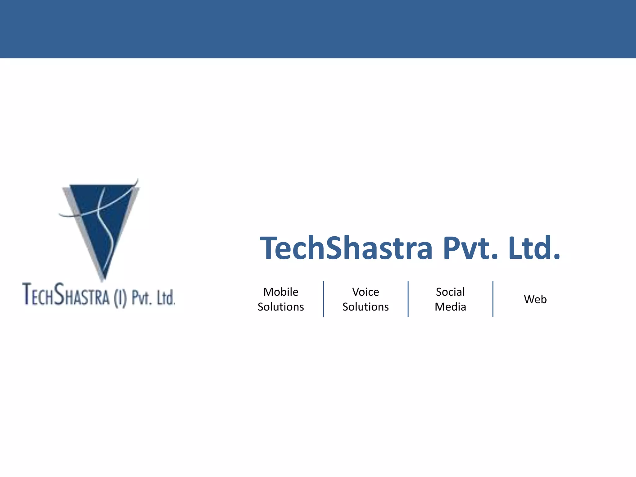 Techshastra Pvt. Ltd. is a software and digital marketing company offering customized solutions in e-commerce, mobile, and social media marketing, with notable partnerships including IBM and Blackberry. The company has successfully executed numerous campaigns, showcasing innovative use of mobile solutions like IVRs and competitive engagement strategies, resulting in significant client interactions and consumer engagement. Additionally, Techshastra provides mobile coupon solutions through its Quopn platform, enabling brands to implement loyalty programs and promotional campaigns effectively.