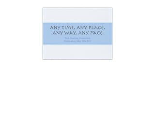 The document outlines a meeting focused on redefining educational paradigms through technology and innovative learning models, emphasizing the importance of adaptability and interaction among educators. It introduces discussions around contemporary challenges in education, including Governor Snyder's educational reform ideas and various learning models such as online, blended, and brick-and-mortar approaches. The meeting encourages participants to brainstorm parameters that affect educational practices and explore future possibilities in teaching and learning.