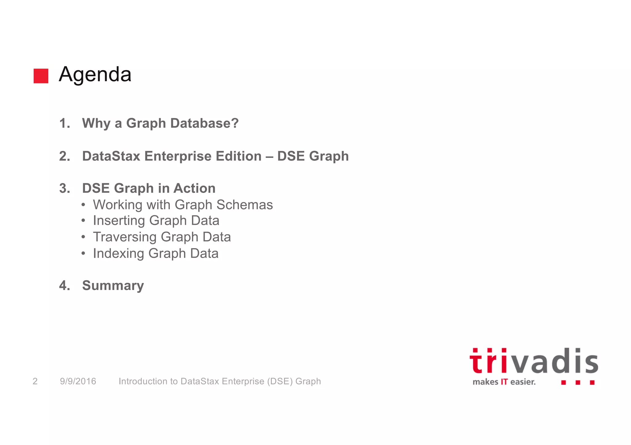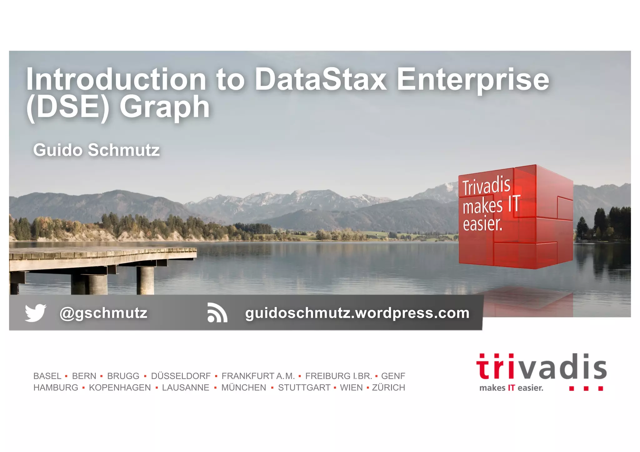 The document introduces DataStax Enterprise (DSE) Graph, a scalable graph database designed for cloud applications to handle complex relationships efficiently. It covers the advantages of using a graph database over traditional relational databases, outlines the DSE graph architecture, and describes features like schema management and Gremlin traversal for querying. Various practical applications and examples demonstrate how to work with graph schemas, insert data, and navigate graph structures.