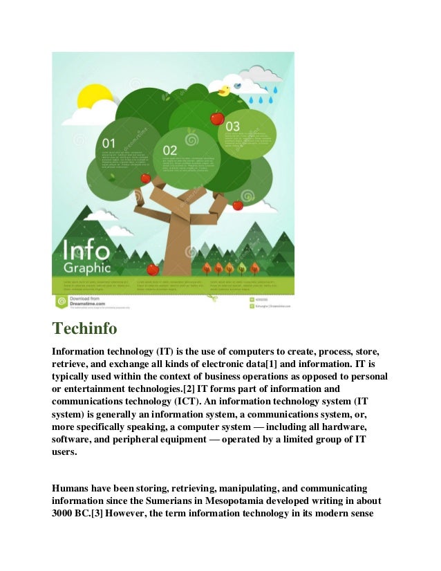 Information technology (IT) involves the use of computers for data processing, storage, and exchange, primarily in business contexts. The concept of IT emerged in the late 1950s, with distinct development phases identified from pre-mechanical to electronic eras. The increasing significance of IT highlights the need for improved education in computer science across school systems.