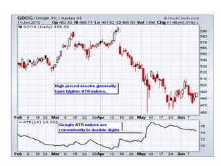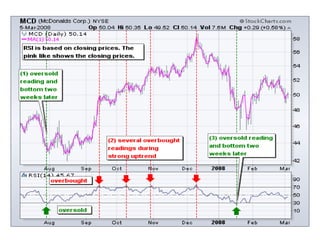- Technical analysis uses indicators like trends, chart patterns, and support/resistance levels to identify trading opportunities. It studies how market forces like supply and demand interact with price.