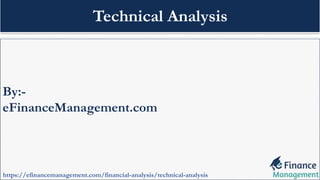 Technical analysis is a method used to predict future price movements of securities based on their past performance, emphasizing that historical trends are likely to continue. It relies on quantitative factors such as price movements and trading volume, contrasting with fundamental analysis that considers both qualitative and quantitative factors. The document outlines the approaches, advantages, and disadvantages of technical analysis, highlighting its simplicity and utility alongside market unpredictability.