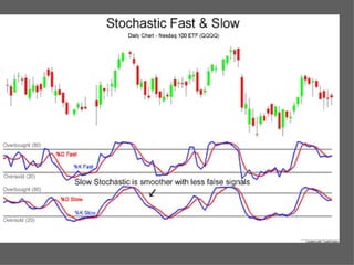 Technical analysis uses charts of market action to detect trends and predict future prices based on the idea that history repeats itself. Various technical indicators are used to analyze price, time, volume, and market breadth to identify trend changes. Dow theory analyzes market averages to identify primary bull and bear markets through confirmation between averages. Charts like line charts, bar charts, and point and figure charts along with common patterns like triangles, head and shoulders, and rectangles are used to identify trends and signals.