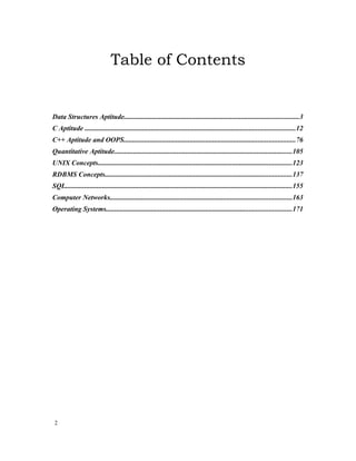 This document provides an overview of various data structures concepts and their applications. It discusses topics like data structures used in different areas like RDBMS, networks, and hierarchical models. Common data structures include arrays, linked lists, stacks, queues, trees and graphs. It also summarizes sorting and searching algorithms like quicksort, different tree traversals, and hashing techniques for resolving collisions. The key data structure used for storage in RDBMS is the B+ tree due to its efficient search capability.