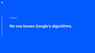 This document presents an extensive overview of technical content optimization strategies for improving search engine rankings. It emphasizes the necessity of understanding Google's algorithms, the importance of relevant content and quality links, and the evolving nature of keyword intent and entity recognition. The speaker advocates for integrating advanced concepts from natural language processing and computational linguistics into SEO practices to meet search engine expectations effectively.