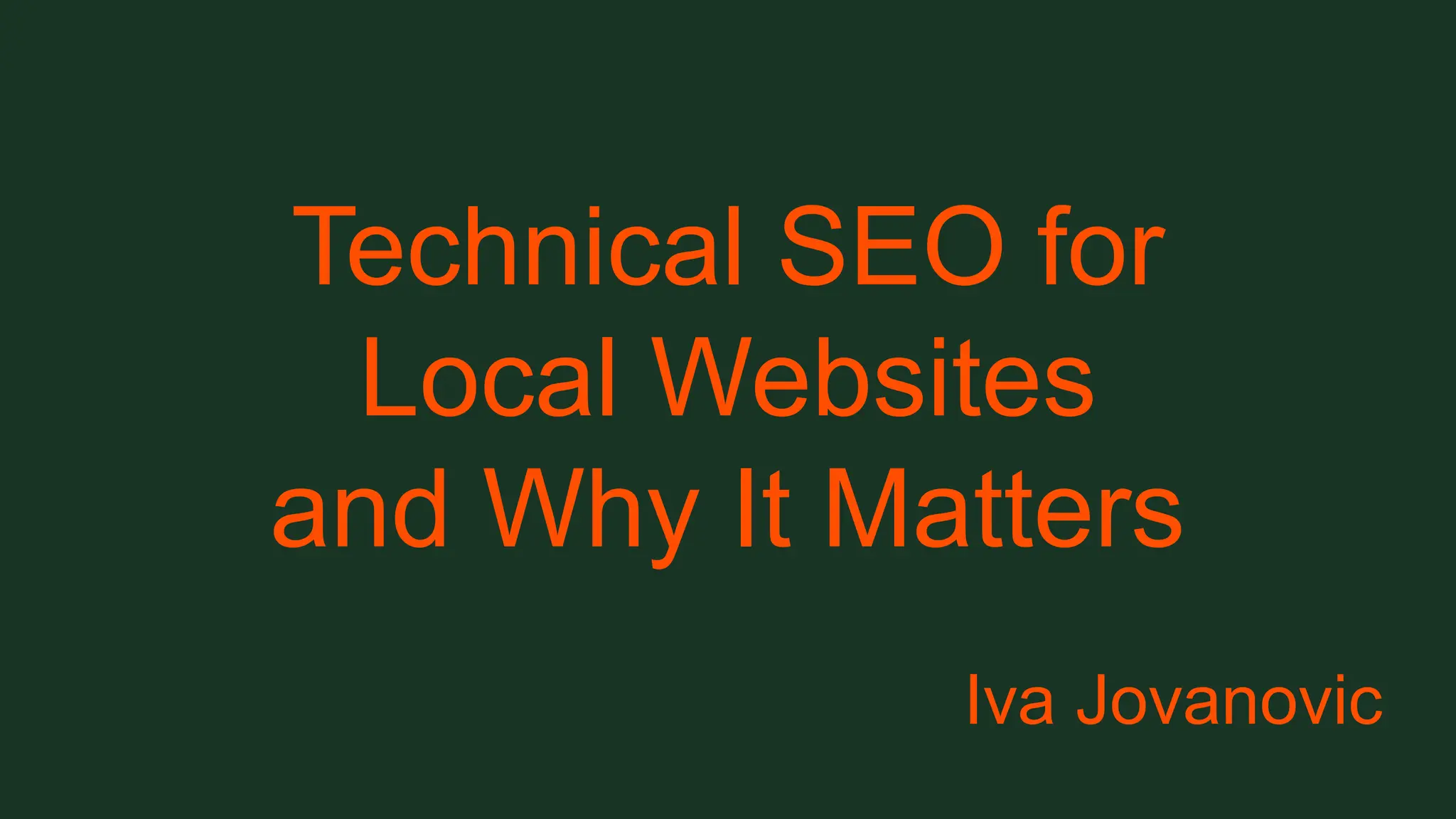 The talk "Technical SEO for Local Websites and Why It Matters" done for Local SEO for Good 2025