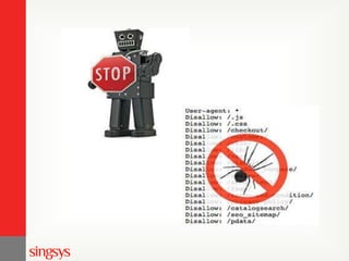 The document provides technical SEO tips for web developers, emphasizing best practices for URL structure, sitemaps, robots.txt, and clean coding. It highlights the importance of page speed, proper use of images, headings, anchor text, and managing canonical issues to improve search engine visibility and user experience. Additional considerations include avoiding duplicate content, checking for broken links, and optimizing title and meta tags.