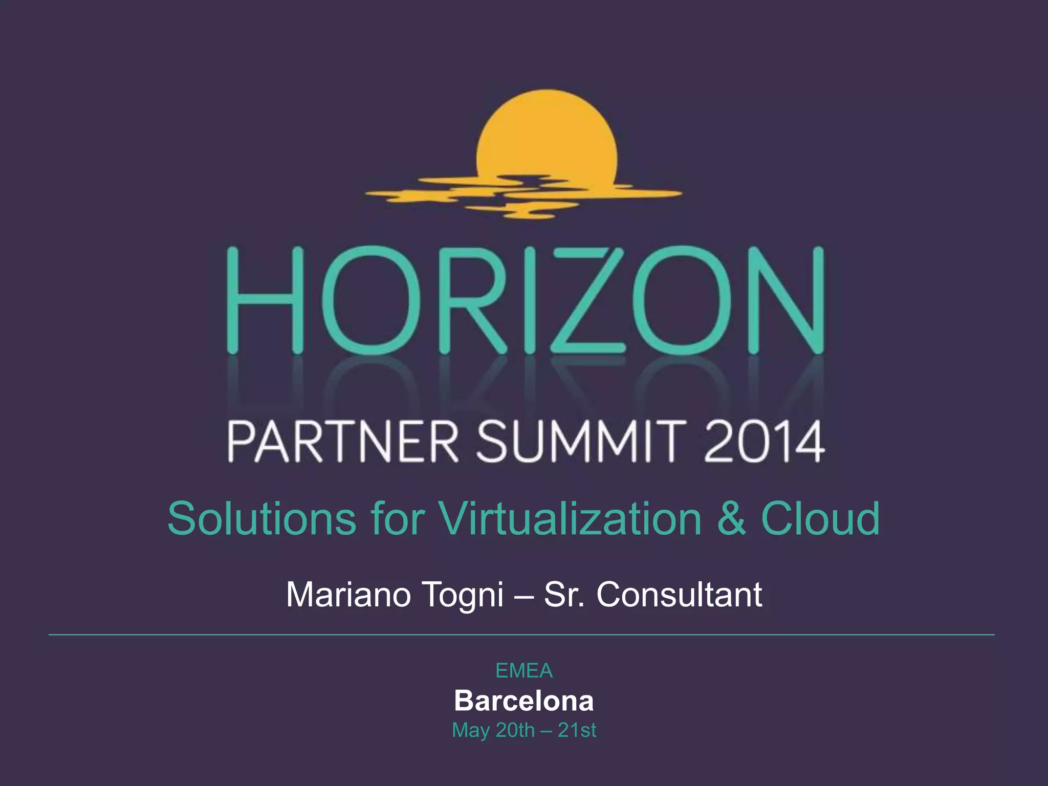 This document summarizes an upcoming presentation and live demo on solutions for virtualization, cloud computing, and licensing and support options for CA Technologies' Unified Data Protection product. The presentation will cover virtualization best practices, agentless backup solutions for VMware and Hyper-V, virtual standby capabilities, backup to public and private clouds, and simplified licensing and support offerings. A demo environment will be used to showcase backup, replication, and recovery features for virtual and physical servers across on-premises and cloud locations.