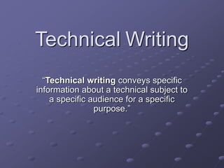1. The document provides tips for effective technical writing, including identifying goals and audience, structuring information well using headings and formatting, using examples and illustrations to clarify complex topics, keeping language concise and simple, using active voice, and avoiding ambiguity.