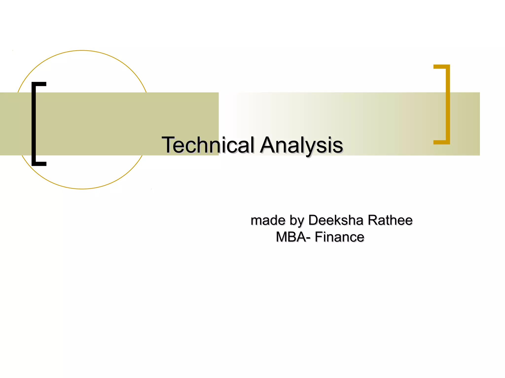 Technical analysis is the attempt to forecast stock prices based on historical market data like price, volume, and other indicators. Technicians look for trends and patterns that may indicate future price movements. They use various charts like bar charts, candlestick charts, and point and figure charts to analyze this data. Key technical tools include trend lines, moving averages, common chart patterns like head and shoulders and triangles, and indicators like MACD, RSI, on-balance volume, and Bollinger bands. Other technical approaches include Dow theory, which analyzes trends in the Dow Jones Industrial Average and Transportation Average, and Elliot wave theory, which looks for recurring wave patterns. While technical analysis is widely used, its efficacy is debated as patterns may
