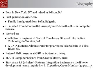 This PhD dissertation by Raffi Khatchadourian discusses techniques for automated software evolution within computer science. It highlights the author's educational background, research contributions, and various publications related to aspect-oriented software development and software maintenance challenges. The dissertation outlines an approach to alleviate burdens in software evolution through automated refactoring and mechanical assistance in development tasks.