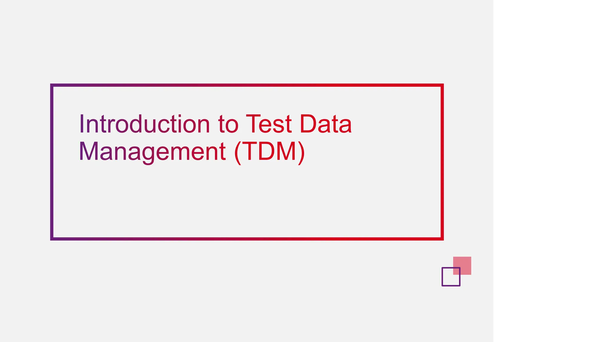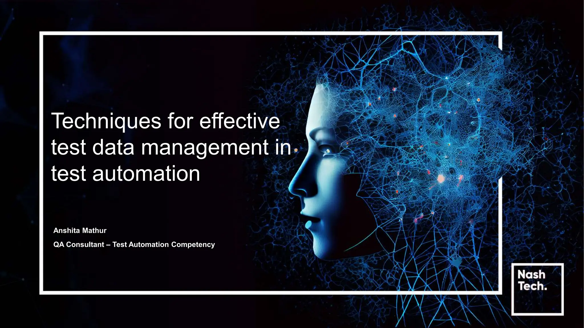 The document discusses effective test data management (TDM) techniques for test automation, emphasizing the importance of managing data used during software testing. It covers various types of test data, methods for generating test data, and best practices for implementing TDM, such as data masking and proper planning. Additionally, the document highlights challenges in TDM and the significance of data security and compliance.