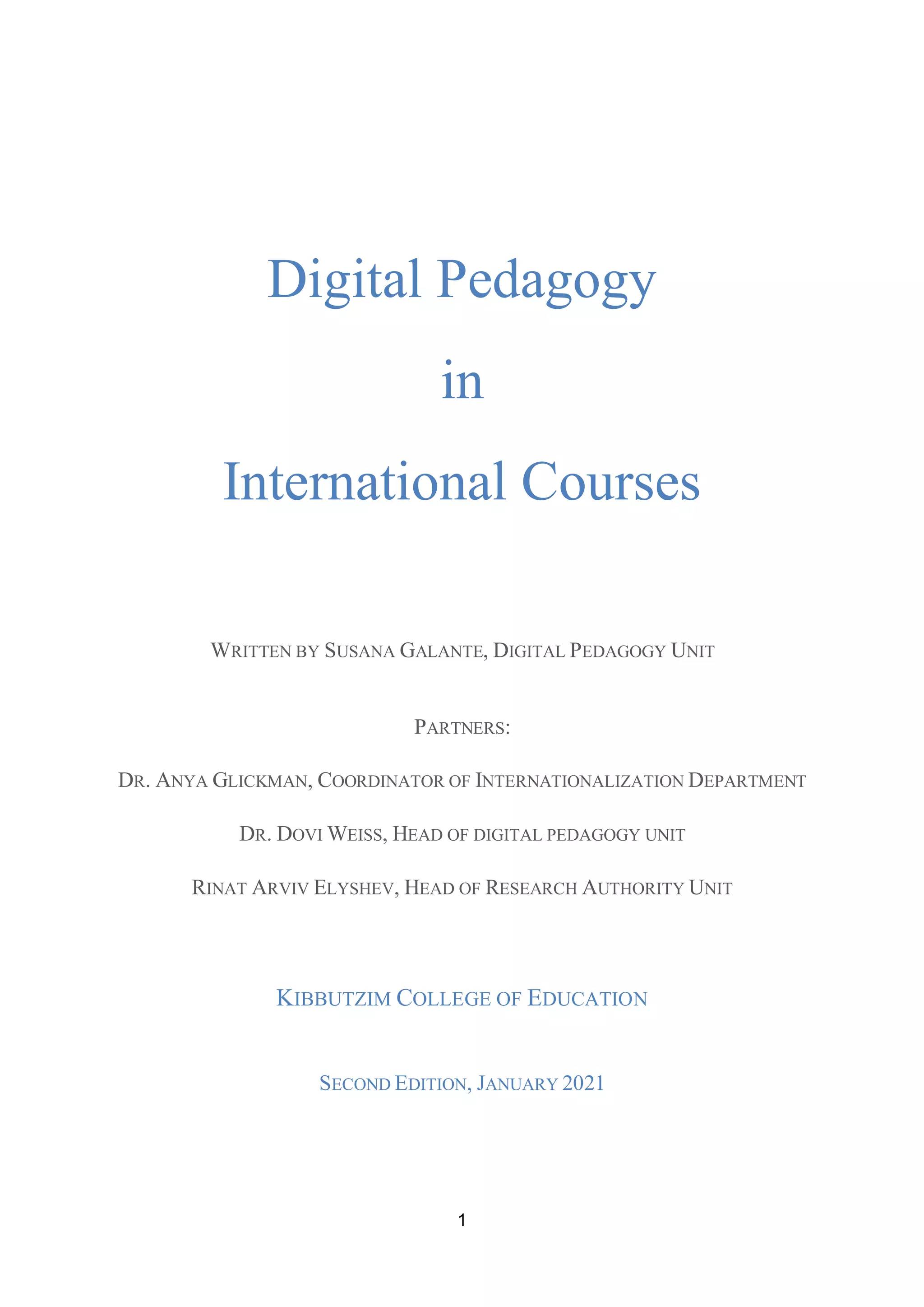 The document outlines the implementation of digital pedagogy in international courses, emphasizing the importance of global competence in higher education. It discusses guidelines for integrating technology into collaborative learning environments, identifies challenges, and recommends practices to enhance intercultural collaboration among students. The document provides models for virtual exchanges, offering insights into effective strategies for engaging in international education.