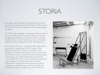 Technogym, fondata nel 1983, si propone di migliorare il benessere delle persone attraverso attrezzature innovative e tecnologia avanzata. La compagnia ha sviluppato una piattaforma ecosistema per clienti e professionisti, permettendo un accesso globale ai contenuti e programmi di allenamento. Con una significativa presenza internazionale e investimenti in innovazione, Technogym continua a espandere il suo mercato e a rispondere alle sfide competitive.