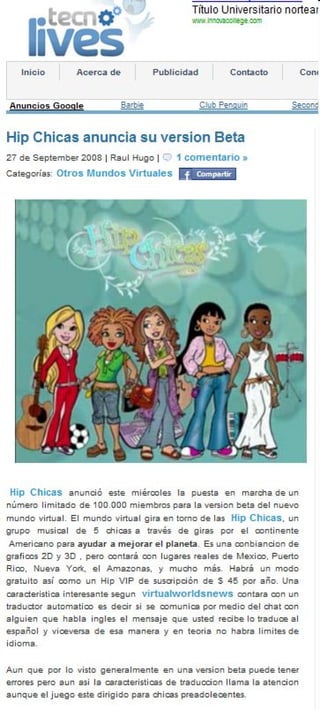 Virtual world news launch placement