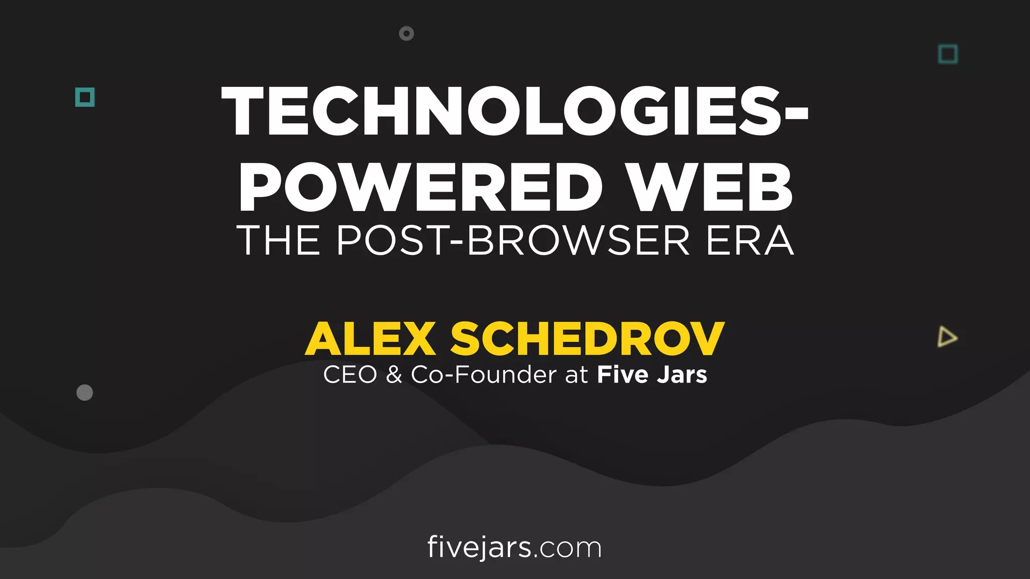 The document presents an overview of the evolution of the internet and the emergence of new technologies, notably focusing on voice assistants, natural language processing, and augmented reality. It highlights the growth of smart speakers and their usage statistics, emphasizing music, news, and general questions as primary user inquiries. Additionally, the text features details about Five Jars, a company founded in 2017 in Kyiv, Ukraine, underlining their search for developers and interest in integrating advanced technologies.