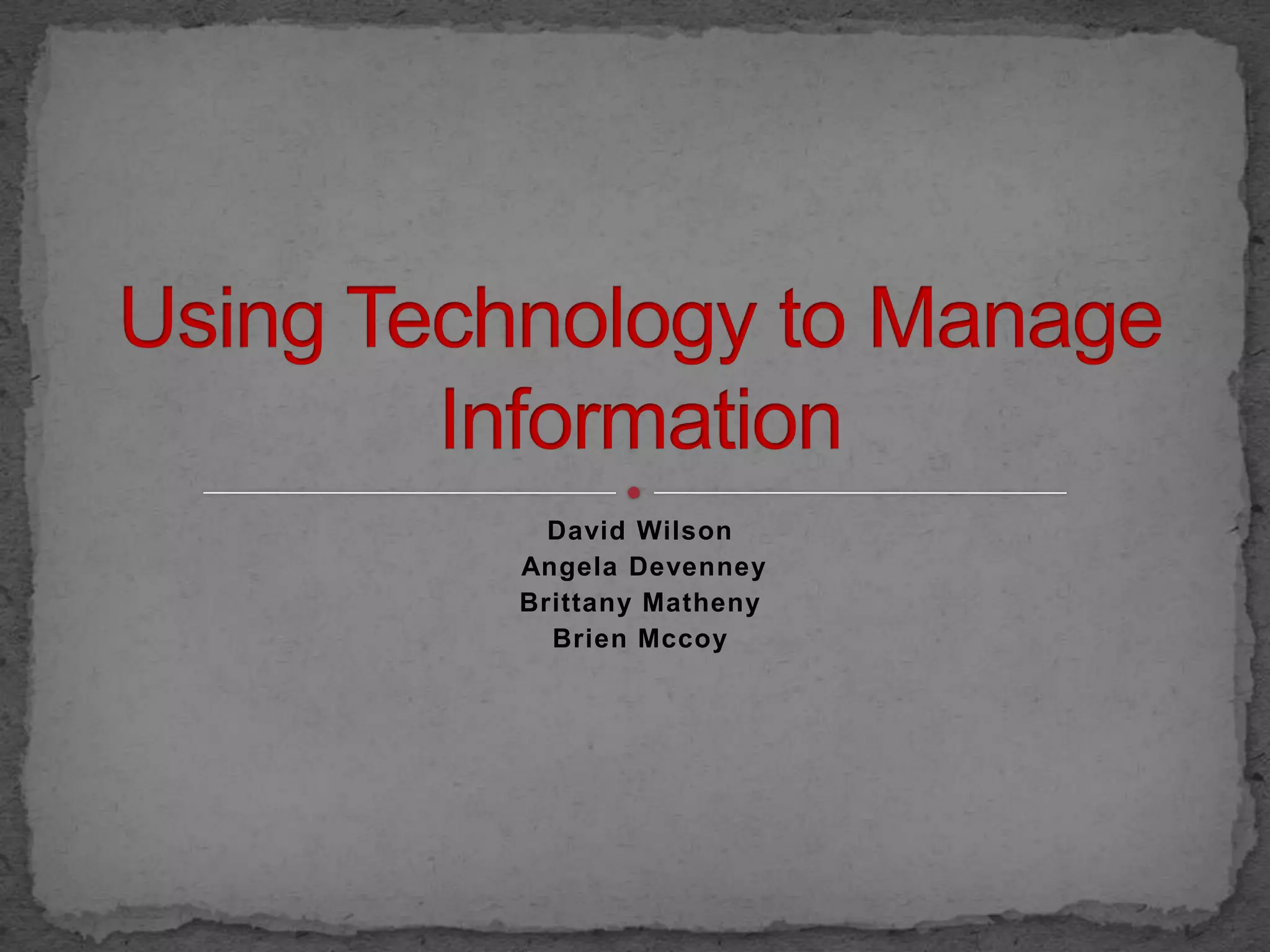 The document discusses several topics related to information technology including how IT is used for communication, the evolution of terms like DP and IT, and how IT has changed industries like entertainment. It also provides tips for organizing emails and files and discusses concepts like data warehousing, data mining, intranets, extranets, VPNs, and portals. Potential issues with IT like security, privacy, and stability are also outlined.