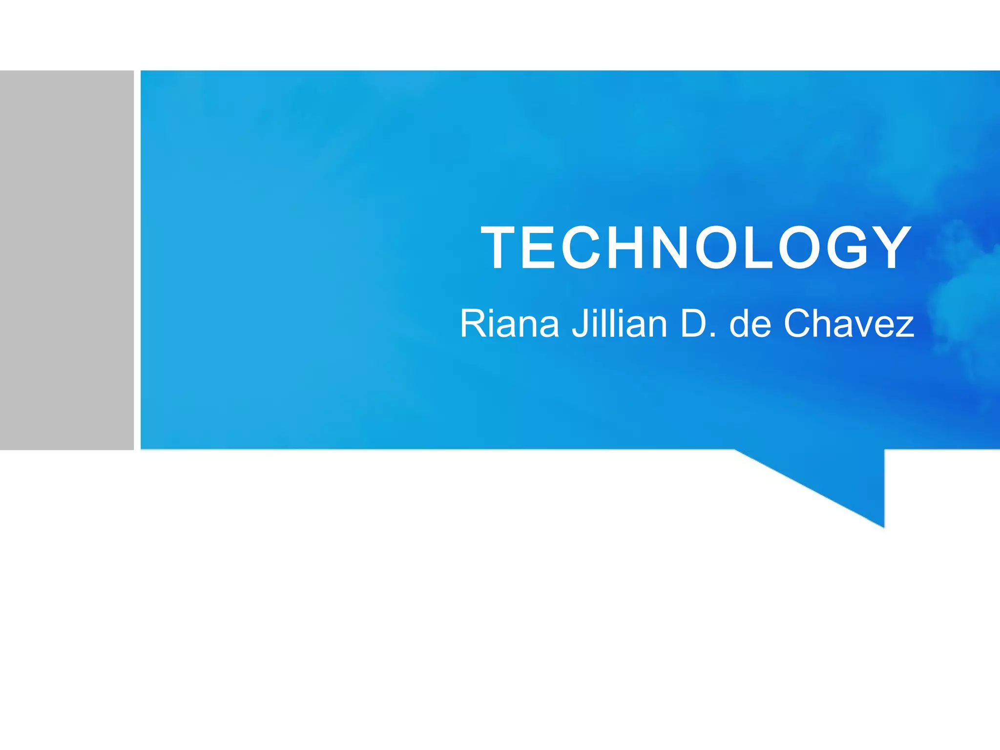 Technology provides many advantages but also disadvantages. It can do things humans cannot, solve complex problems easily and accurately, and provide entertainment and communication. However, overuse of technology can damage health, increase crime and laziness, and change lifestyles and culture. While technology offers benefits, it is important to limit screen time and maintain a balance.