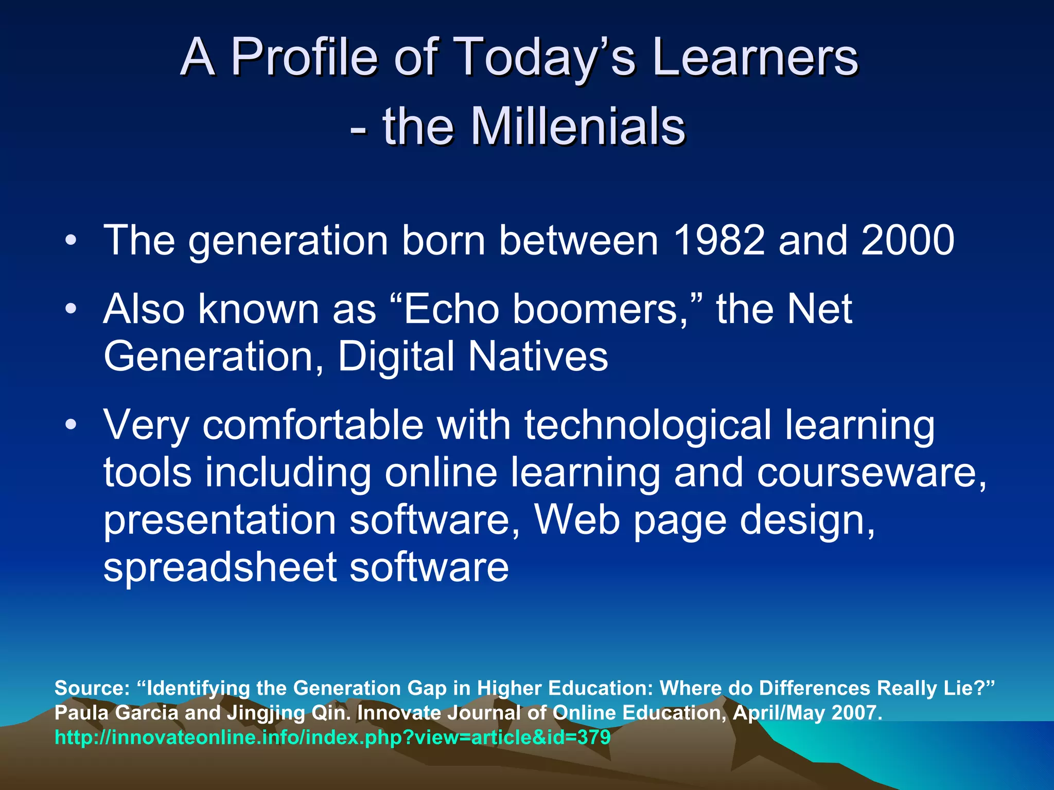 The document discusses learning styles and technologies used by Millennials, who grew up with computers, video games, the internet and mobile devices. It notes that Millennials learn differently than previous generations by preferring hands-on, interactive approaches. Their brains have adapted to constantly seeking information online and from digital sources. While some say Millennials have short attention spans, the document argues they can focus for long periods on interactive media but less so on traditional teaching methods. It lists various portable devices, social media, virtual worlds and open source tools that define Millennials' technology use.