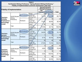 - Technology integration in Littleton Public Schools has led to increases in student achievement, including an 11.8% increase in writing scores and a 46.5% increase in science scores. - The district has implemented 1:1 netbook programs in 5th, 6th, and 9th grade classes and received multiple grants to support technology integration, with plans to expand the programs to more grades. - Teachers in LPS are actively using technology for instruction, with many maintaining blogs and wikis to share resources and student work that demonstrate how technology supports learning.