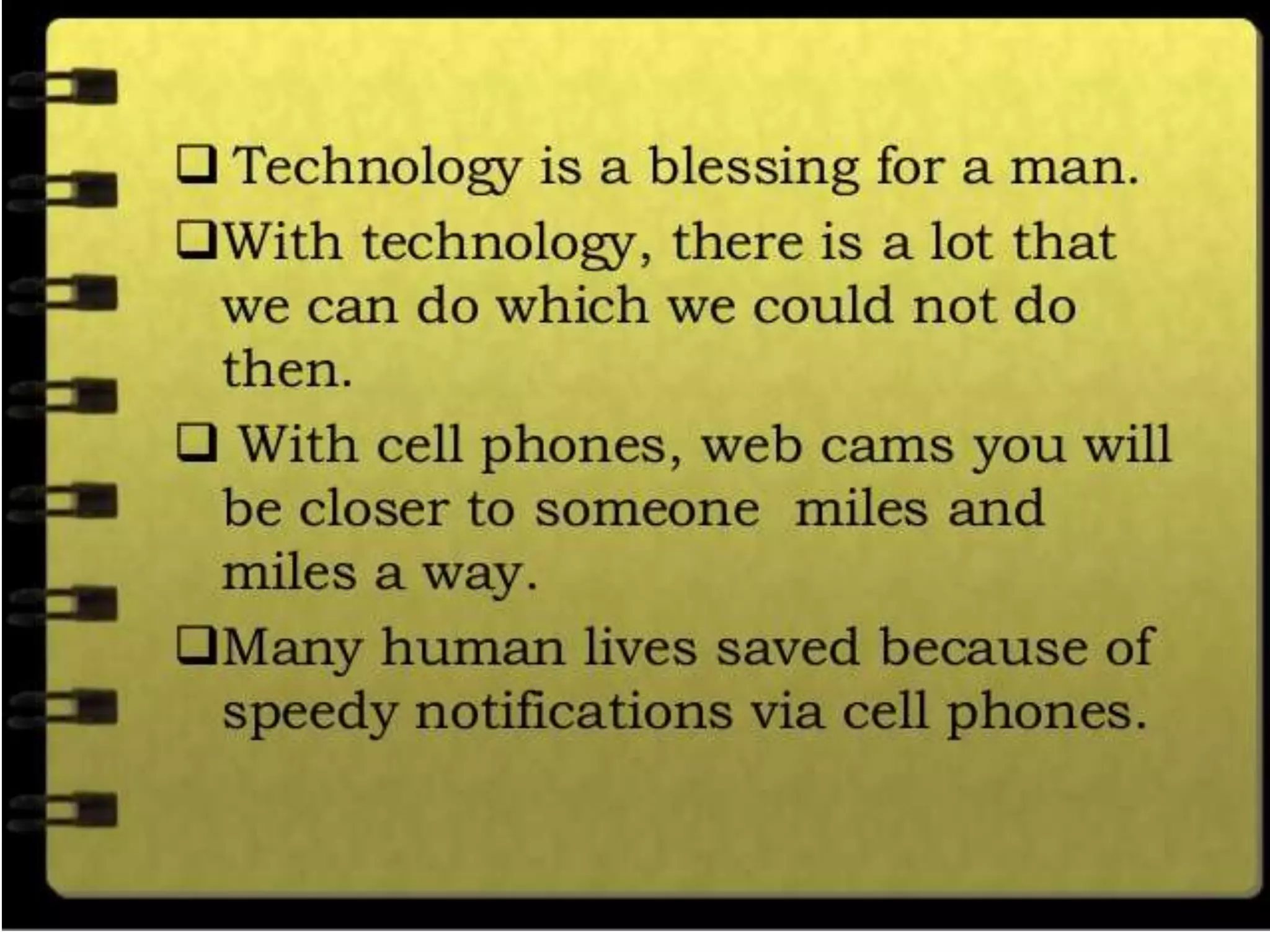 Technology has greatly impacted our lives both positively and negatively. While technology has increased productivity and connectivity, it has also increased distractions and the potential for addiction. Overall, technology provides benefits if used responsibly and balanced with other activities, but can become problematic if overused.
