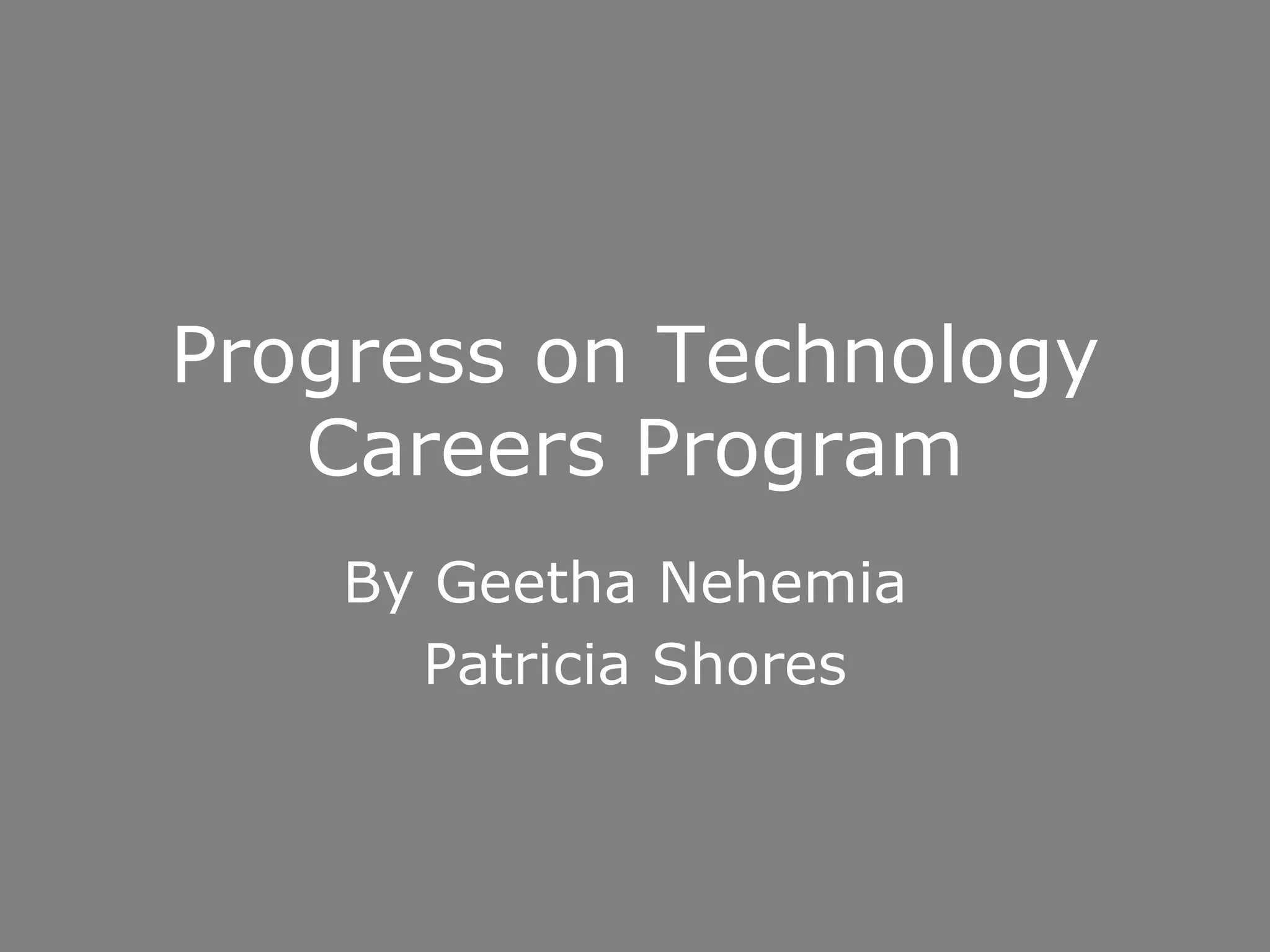This document provides an update on the progress of a technology careers program between November 2007 and February 2008. It outlines the program's timeline, including presenting workshops for faculty, developing projects for the spring semester, and offering services to local high schools. It also briefly describes some electronic portfolio software tools and provides examples of existing ePortfolios using those tools.