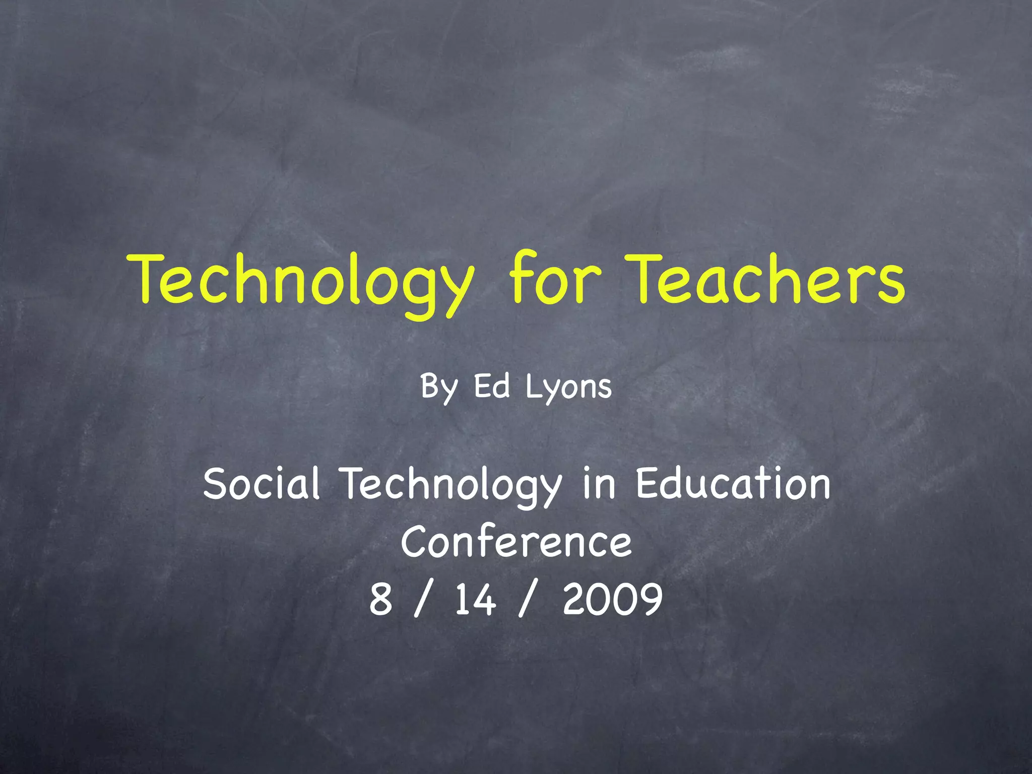 The presentation aims to inform teachers about key technology concepts relevant to education, emphasizing the importance of basic knowledge of the internet, operating systems, applications, and open-source software. It highlights how technological advancements allow teachers to deploy web technologies easily and encourages experimentation with social tech. Key topics discussed include server and client roles, operating systems, programming languages, and modern web services like APIs and mashups.