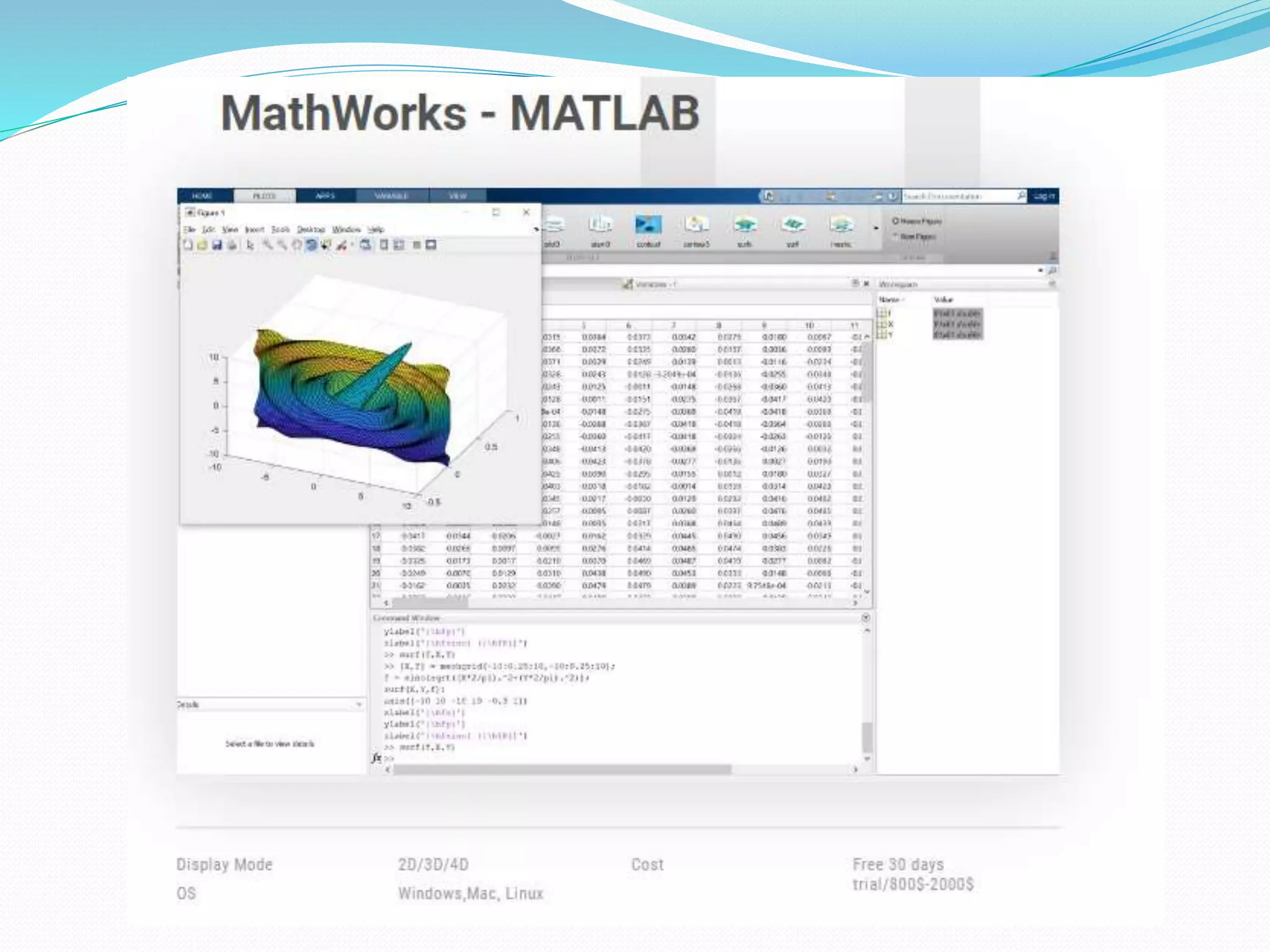 Dynamic graphing tools like amCharts and Flot assist in visualizing complex data, while MATLAB and Python provide essential environments for mathematical modeling.