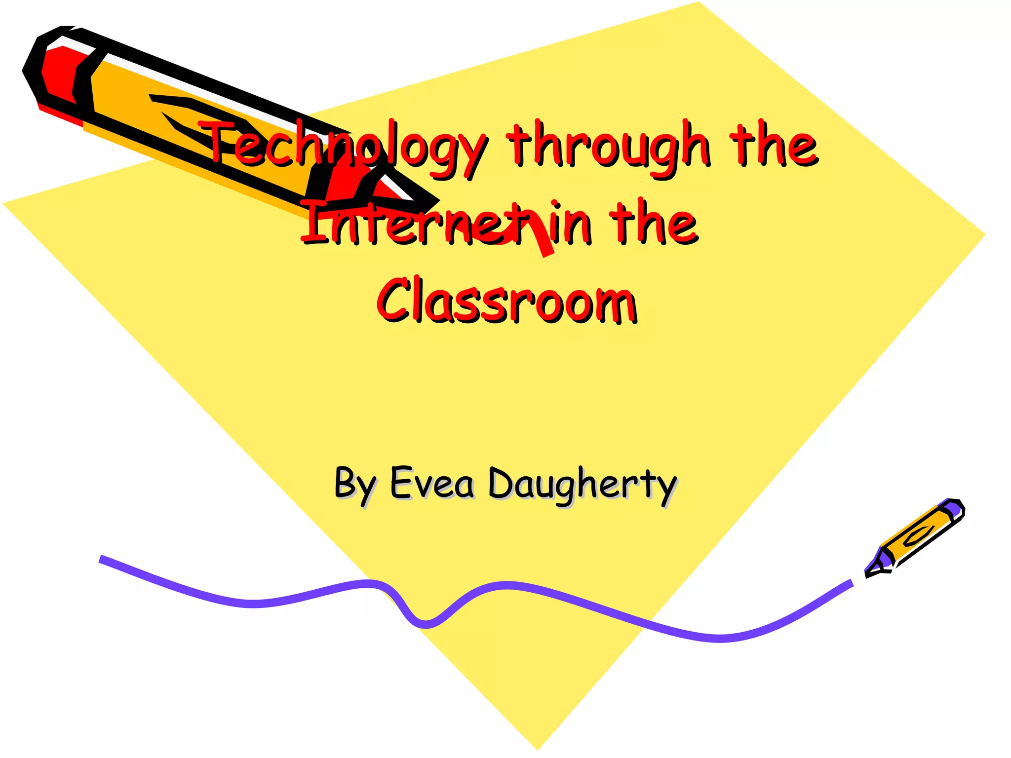 This document discusses the use of technology and the internet in the classroom. It covers several topics: the amount of money spent on technology and challenges with teacher adoption; studies linking technology to improved academic achievement and problem solving skills; how combining technology with instructional strategies can improve learning; and how teachers need training to effectively integrate technology. It also describes the "Knowledge Web" concept which creates an interactive way for students to learn and make connections. The conclusion emphasizes that technology is what we make of it, and teachers need to understand the tools and how to use them to enhance learning and make it fun.
