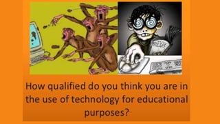 This document discusses the use of technology in the classroom. It begins by quoting skepticism about new technologies from the past and advocating for teaching skills for the future. There are many ways described to use the internet in the classroom, including videos, research, dictionaries, blogs, social media, online classes and email pen pals. Favorite non-web technologies mentioned are computers, projectors, speakers and PowerPoint. The advantages of projectors and speakers are their interactive and engaging nature. Video technologies are praised for allowing rewinding and pausing for comprehension. Social media statistics are presented. Students' own technologies like phones can be utilized. The top ten best web tools listed include YouTube, websites for materials, blogs, listening labs,