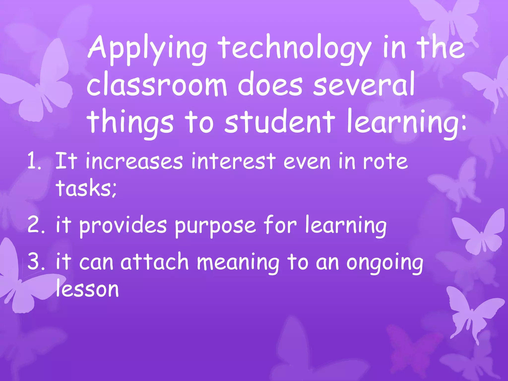 Applying technology in the science classroom can increase student interest, provide purpose and meaning to lessons, and allow students to see relationships between concepts rather than isolated facts. Technology should enhance learning, not just provide access, and can include websites, digital cameras, probes, handheld devices, and software. When used effectively, technology allows students to study real-world events and outperform those using only traditional methods.