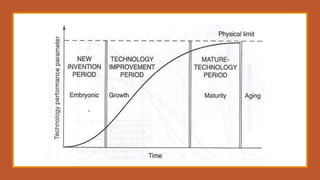 The document discusses the advantages of advanced technology in domestic and global markets. It outlines how technological advancement leads to economic growth and a wealthier nation by making organizations more efficient, competitive, and profitable. It also describes technology life cycles and strategies, including scanning the environment, strategic planning, forecasting, and analyzing strengths, weaknesses, opportunities, and threats. The technology policy aims to promote scientific temper, skills, careers in science and research, infrastructure for R&D, private sector participation, and innovations that create wealth.