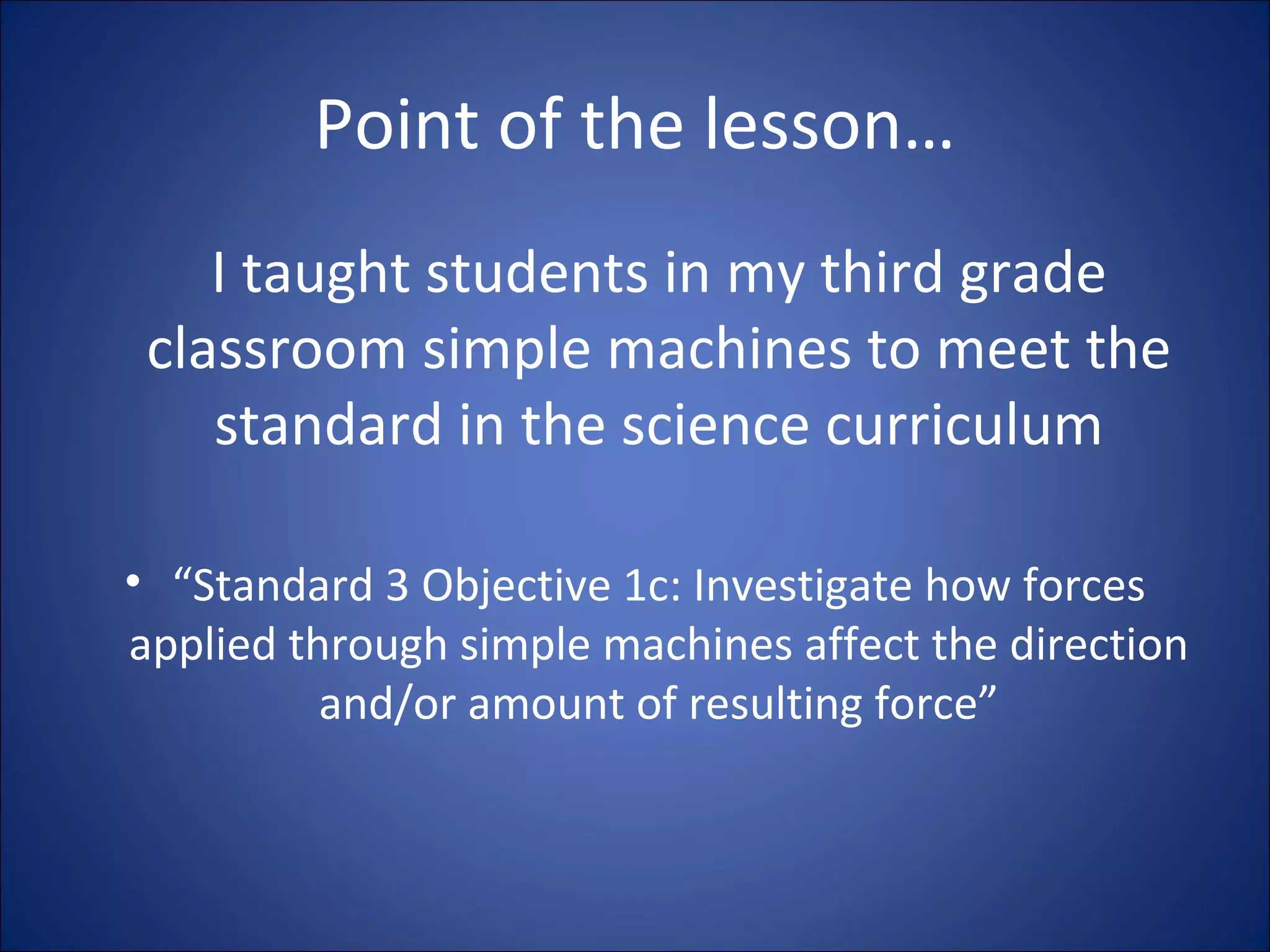 This document outlines a three-day lesson plan for third-grade students on simple machines, incorporating technology to enhance learning. Students engaged with an online resource to identify and classify simple machines in various environments, promoting active participation and deep thinking. The author suggests that future lessons could benefit from each student having individual access to technology for a more interactive experience.