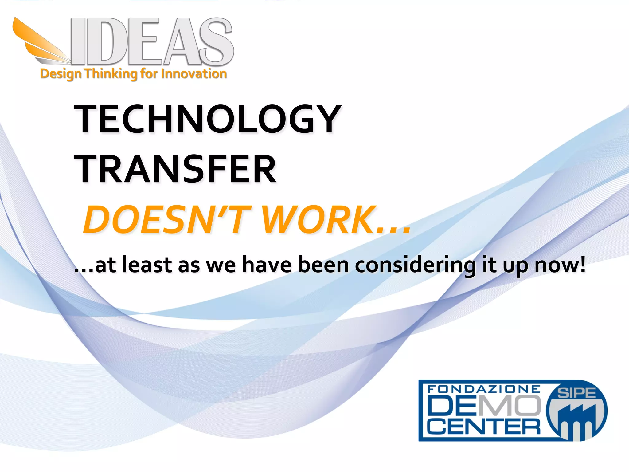 The document discusses challenges with traditional technology transfer and proposes an approach focused on innovation. It notes that operating margins are declining due to market consolidation. It also mentions the need to defend against new competitors and find new markets and customers. The approach proposed emphasizes daring ideas, teamwork, learning by doing, focusing on customer needs to develop a vision, and creating an innovation culture within companies to strengthen competitiveness.